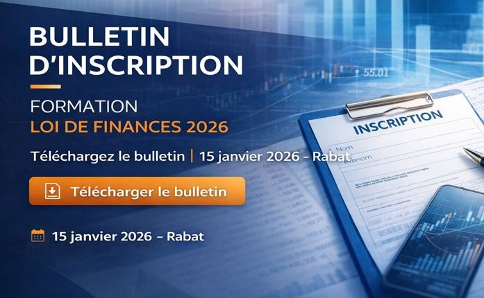 Téléchargez le bulletin d’inscription à la formation sur les dispositions fiscales de la Loi de Finances 2026, organisée par FIZAZI & ASSOCIÉS le 15 janvier 2026 à Rabat.